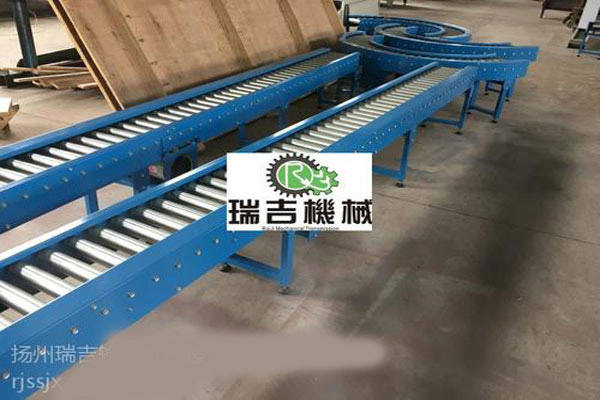 特点:转弯滚筒输送机之间易于衔接过滤,可用多条滚筒线及其它输送设备或专机组成复杂的物流输送系统以及分流合流系统,完成多方面的工艺需要。可采用积放滚筒实现物料的堆积输送。滚筒输送机结构简单,可靠性高,使用维护方便,动力滚筒输送机考虑链条抗拉强度,最长单线长度一般不超过10米。