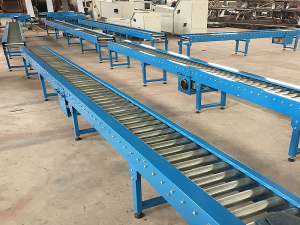 积放滚筒输送机通过有序的“积”和“放”,可以实现货物在指定输送段上的停留和暂存,来满足所需要的传输节拍。由机架、滚筒、链条、链轮、传动轴、支腿、马达等几部分组成,可用于纸箱、塑料周转筐、工装板等箱式元件的积放式存储;通过调节滚筒端面螺栓来改变筒体与链轮的摩擦力,从而适应不同物料的重量,传动方式不同可分为单链轮传动滚筒、双链轮传动滚筒、同步带传动滚筒、多楔带传动滚筒、O带传动滚筒等;输送滚筒材质有碳钢镀锌、不锈钢、铝质、塑料等,输送滚筒标准宽度有300、400、500、600、800、1200mm,广泛应用于食品、饮料、电子、日化等行业;
