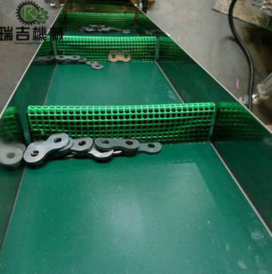 皮带输送机运用输送带的连续或间歇运动来输送各种轻重不同的物品,既可输送各种散料,也可输送各种纸箱、包装袋等单件重量不大的件货,用途广泛。 输送带的材质有:橡胶、橡塑、PVC、PU等多种材质,除用于普通物料的输送外,还可满足耐油、耐腐蚀、防静电等有特殊要求物料的输送。采用PU材质的输送带,可满足食品输送、制药生产、日用化工生产等行业的要求。 按照结构形式分类:槽型皮带机、水平皮带机、爬坡皮带机、转弯皮带机等多种形式 输送带上还可增设提升挡板、裙边等附件,能满足颗粒物以及粉体的提升工艺要求。输送机两侧配以工作台、加装灯架,可作为电子仪表装配线,食品包装线等。 纸箱、包装袋爬坡输送时建议倾斜角度不超过30度,皮带采用爬坡防滑花纹皮带;我们还可以做一些特殊设计使皮带机可以准确、频繁的正反转动,真正实现输送机正反转皮带不跑偏。