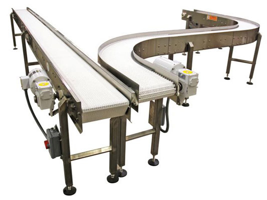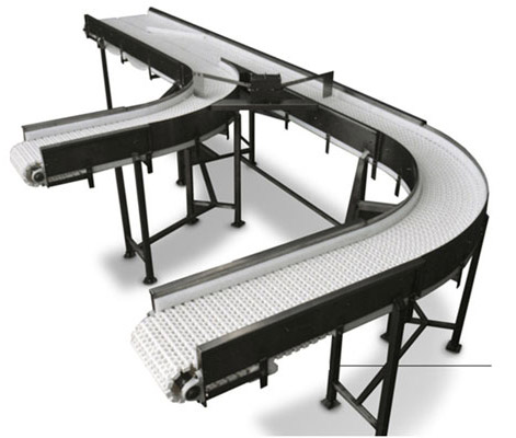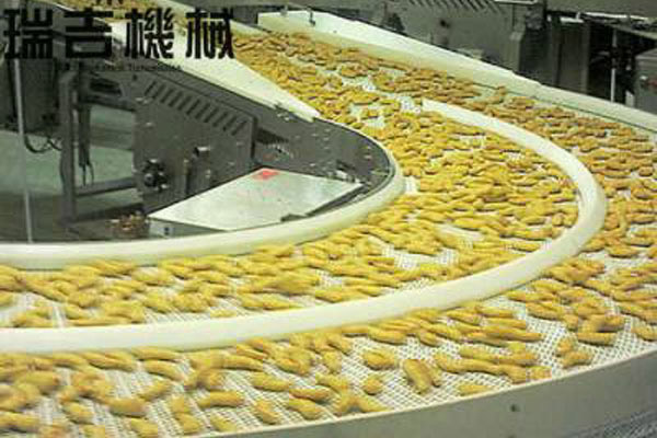 转弯网带输送机采用专用POM塑钢网带运行在非标设计制作的导轨中,适配性机加工链轮牵引传动,使之循环动作,从而起到网带转弯的目的。转弯网带输送机转弯导轨因具有分子量高、耐磨、无毒的作用,所以广泛应用于日化、制药、食品等行业。