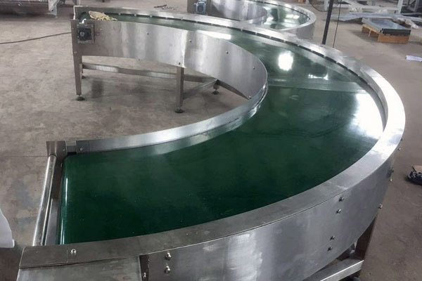 转弯皮带机扇形皮带加装专用的防跑偏滚轮 (轴承外加聚甲醛POM)或者在输送带的外侧高频焊接导向筋使输送带运行在专用的导轨中,辊筒采用专用的锥型包胶辊筒,广泛应用在食品、饮料、电子、烟草等行业,我们可以选用较小直径的滚筒,使转角连接更加方便,解决过渡问题。...