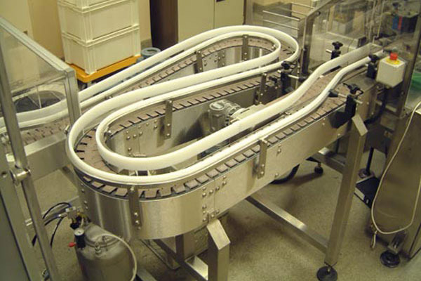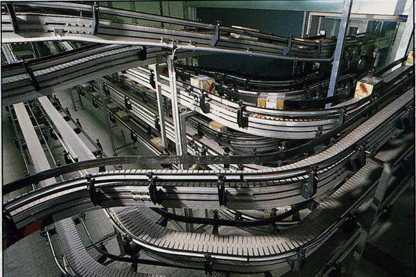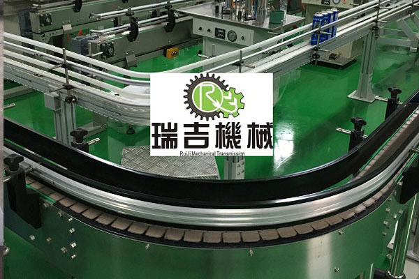 链板式转弯输送机是链板输送机的一种,转弯角度任意角度,甚至于直接做成任意的S型转弯;机架有碳钢喷塑、不锈钢、铝型材等,链板宽度有82.5、114.3、152.4、190.5、304.8,且链板材质有POM塑钢、不锈钢、碳钢可选,广泛用于食品、罐头、药品、饮料、化妆品和洗涤用品、纸制品、调味品、乳业及烟草等的自动输送、分配、和后道包装的连线输送。