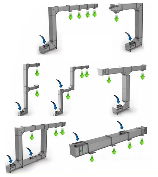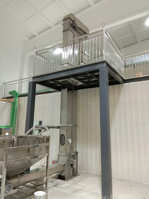 转斗式提升机又称为斗提机,链斗式提升机,由机头、机尾及竖直段机筒、传动轴、链轮、链条、料斗、马达、电控几部分组成,料斗与料斗之间采用无缝搭接形式,可满足颗粒、粉末、短条状、小块状物料的连续式垂直提升输送,进出料口位于设备的两侧或同一侧,可满足同一平面的多点进料,亦可不同层进出料,一层既可以提升到二层,同时也可以提升到第三层,使得进料口及出料口不在同一平面的多点出料问题得到解决;料斗采用了PP塑料材质,可直接与食品接触;提升物料与料斗之间相对静止,使得物料在提升输送过程中不会产生破损,对破损率要求严格的种子、有机大米、坚果等物料来说,斗式提升机为较好的选择;提升高度达到了40米,提升量≤20立方;我们通过加大了料斗的容积,使得整个设备运转的速度始终处于低速运转状态,间接的延长了提升料斗以及链条的使用寿命,减少了易损件的损耗,相比较老款斗式提升机来说降低了设备的维护成本,提升了产量,降低了能耗;